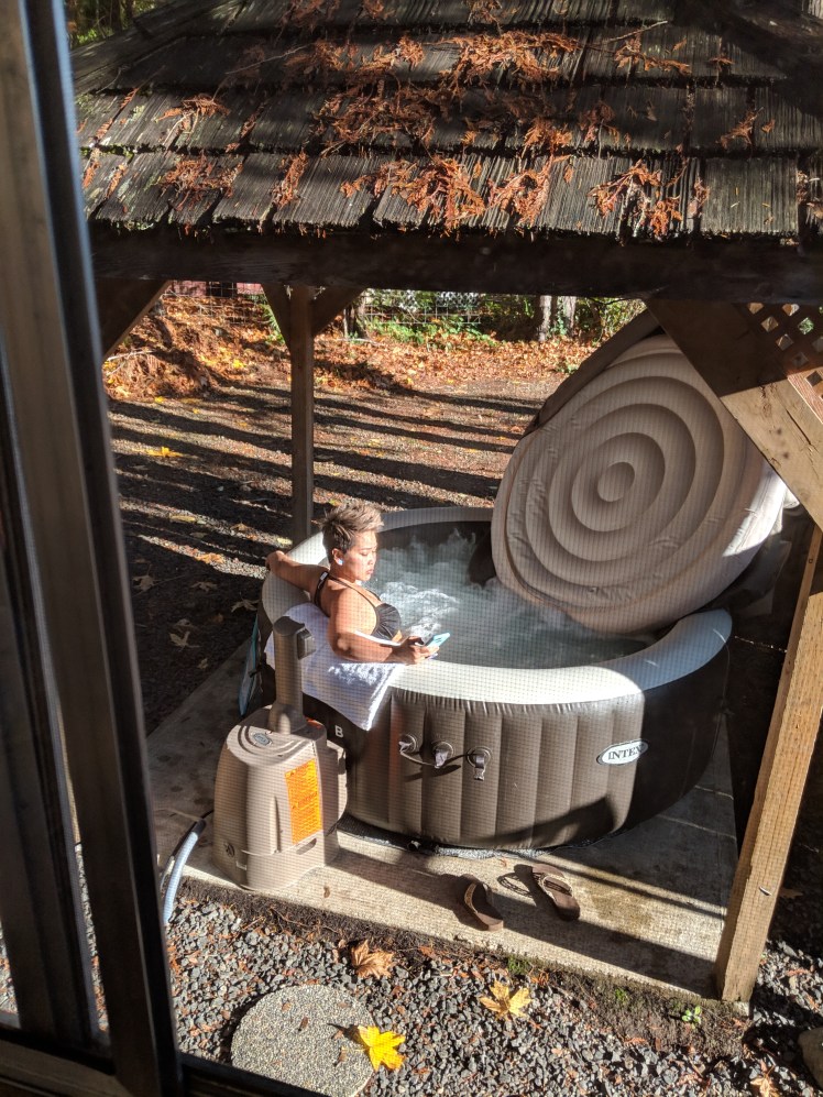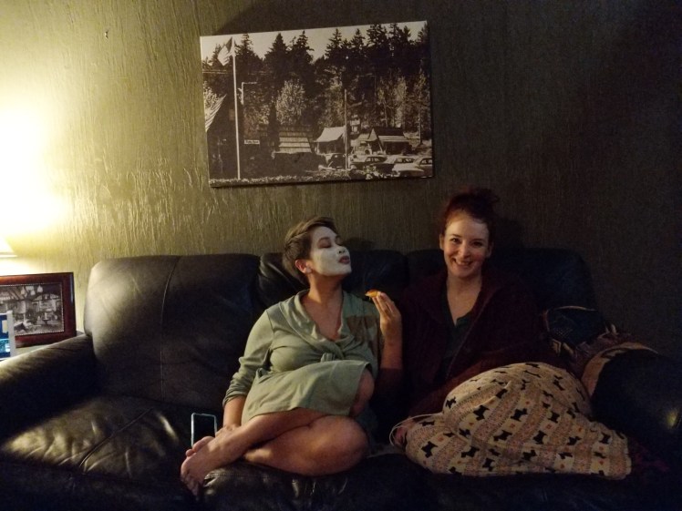 Our cabin had a personal hot tub and Rachel and I made immediate use of it. It was a fascinating ‘inflatable‘ one, which is something I wouldn’t mind owning myself! Later in the night we gathered ’round the coffee table and played the ‘Friends’ edition of Cards Against Humanity while doing face masks. I freaking love Freeman Face Masks. Rachel and I brought our collections, so we had eight to choose from. It gave me a chance to try the Dead Sea Minerals one and it really felt incredible. This is reminding me that I wanted to buy some for myself 😮 Also? A girls night of doing face masks and giggling and talking is as fun as I hoped it would be. A cliche that holds up. Primo good time, A+, I do recommend doing this with your friends.
