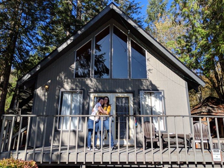 We rented a cabin at the Robin Hood Village Resort in Union, Washington. It’s directly off of route 106 with a drive to get there that is positively gorgeous. It winds along the Hood Canal, and it looked particularly good at the end of October with that blazing foliage 😍