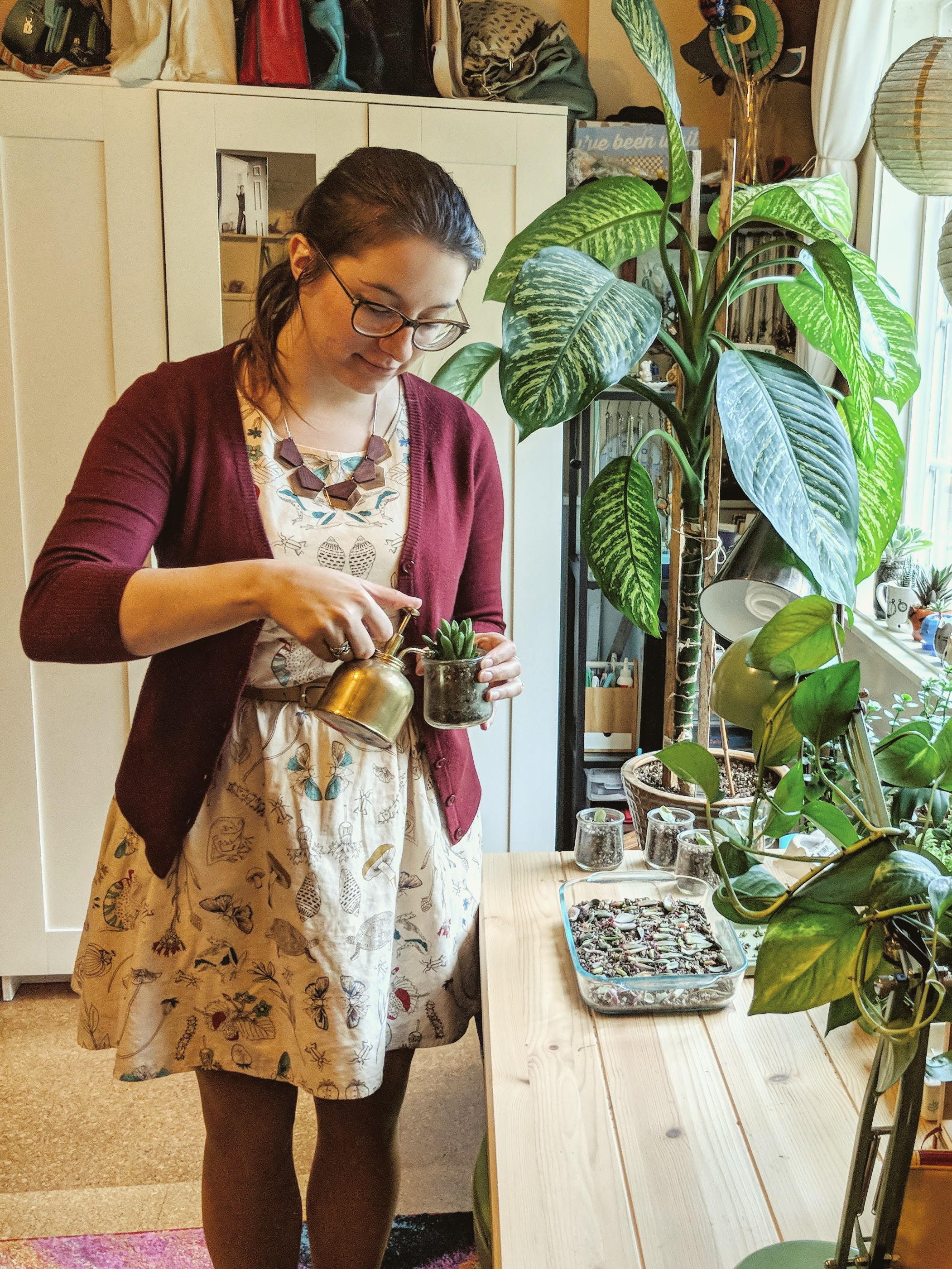In spite of growing up in a house full of plants, and coming from a lineage of green-thumbed women, I accidentally killed all of my plants until about two years ago. My mom insisted that they were easy (“You just have to water them!“) but that wasn’t my experience. Remembering to water seemed dull and time consuming, and even though I was watering them they still weren’t doing well. So what was I doing wrong?